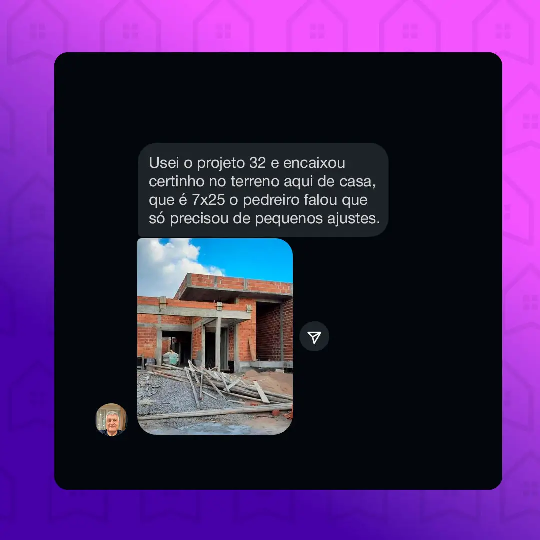 Projetos 100% prontos para construir, com plantas, cortes, materiais, orçamento e 3D. É só escolher e começar.